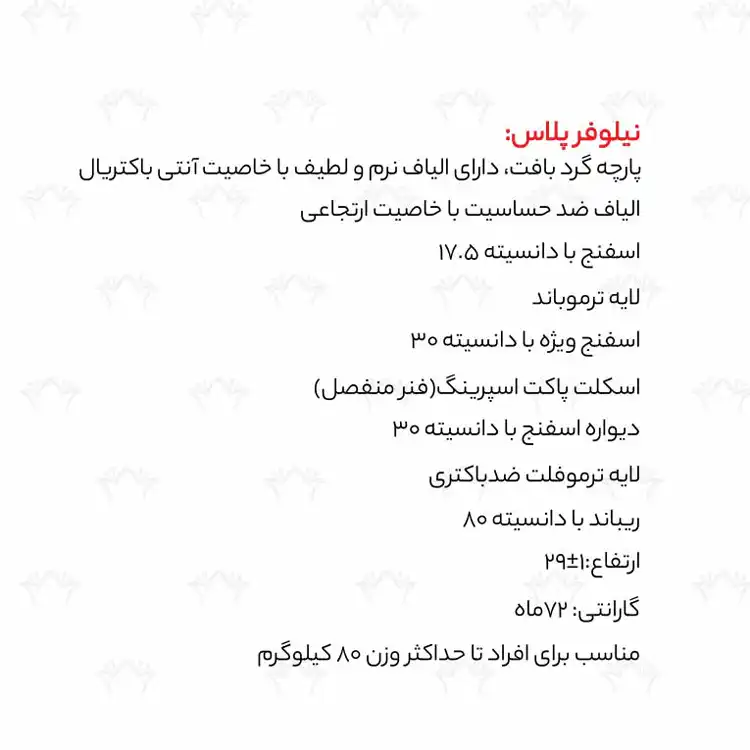 نیلوفر پلاس ابعاد 200*160 از برند معتبر نارمیلا را در دستهبندی کالای خواب > تشک ببینید. این محصول با کیفیت بالا، تضمین اصالت کالا و بهترین قیمت در فروشگاه موجود است. برای خرید و بررسی کامل محصول، هم اکنون اقدام کنید.