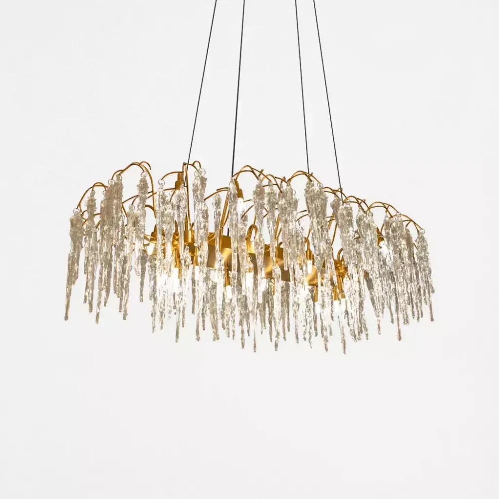 لوستر لاینر 2 لاین کریستال لوله ای 120*35-طلایی براق-شفاف- کد 166