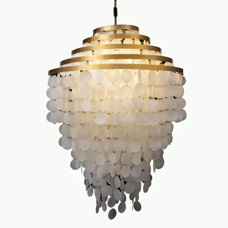 لوازم روشنایی -لوستر تیفانی گرد قطر 30 فریم طلاخش کریستال صدف