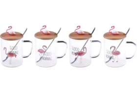 لیوان شیشه ای فلامینگو با درب بامبو B1165