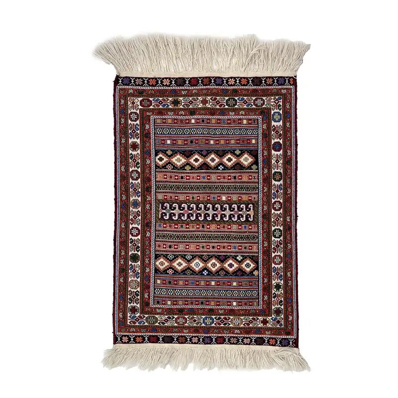 خرید و بررسی قیمت راه راه سوزنی سایز 90*61 کد 1111-7 از برند گلیم و گلیم فرش دستباف