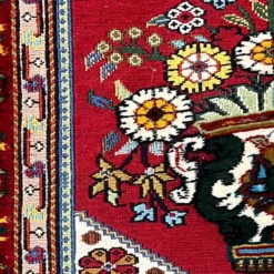 خرید و بررسی قیمت فرش – فرش گلدان قرمز گل برجسته سایز 85*61 کد 1680 از برند گلیم و گلیم فرش دستباف